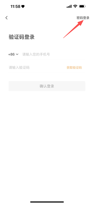 3、在驗(yàn)證碼登錄頁(yè)面,點(diǎn)擊右上角的密碼登錄,切換至密碼登錄界面。