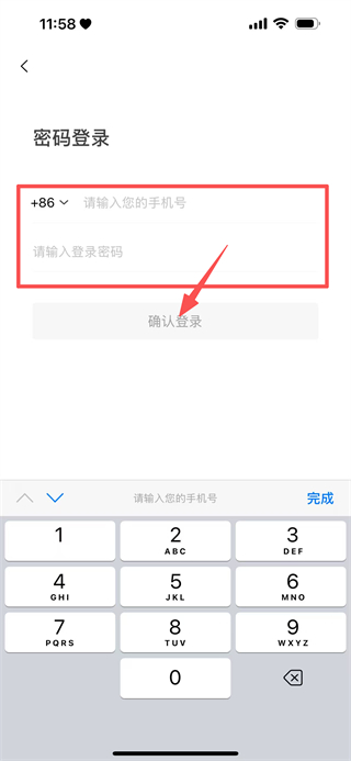 4、在密碼登錄界面,輸入手機(jī)號(hào)和登錄密碼后,點(diǎn)擊確認(rèn)登錄完成賬號(hào)登錄。
