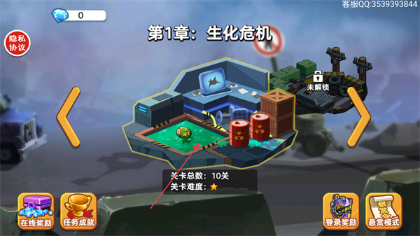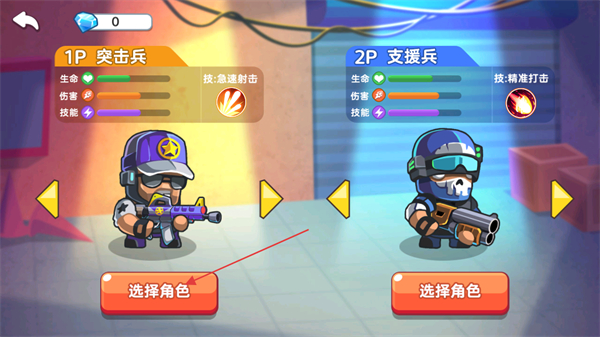 1、打開(kāi)雙人英雄槍戰(zhàn)游戲主頁(yè),點(diǎn)擊進(jìn)入章節(jié)劇情關(guān)卡。