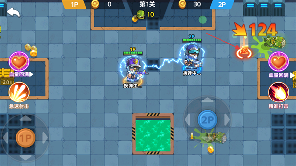 雙人英雄槍戰(zhàn)無(wú)敵版是一款刺激又歡樂(lè)的雙人動(dòng)作射擊類型作品,支持在同一設(shè)備上兩人協(xié)作對(duì)戰(zhàn),體驗(yàn)并肩作戰(zhàn)的快感,操作簡(jiǎn)單且玩法豐富,涵蓋突擊兵、狙擊手等多職業(yè),可自由組合搭配策略,增添對(duì)戰(zhàn)樂(lè)趣,隨著關(guān)卡難度提升,可用金幣強(qiáng)化戰(zhàn)力,挑戰(zhàn)極限闖關(guān),包含五大章節(jié)冒險(xiǎn)內(nèi)容,戰(zhàn)斗節(jié)奏緊湊爽快,感受雙倍激情。