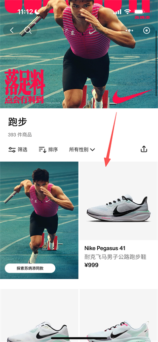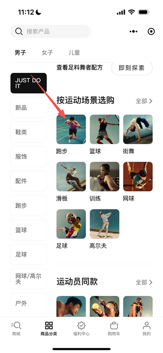 2、在商品分類頁面,點擊跑步場景選項,進入跑步類商品列表頁面。
