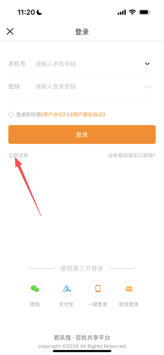 3、在登錄頁面,點(diǎn)擊立即注冊選項(xiàng),進(jìn)入注冊頁面。