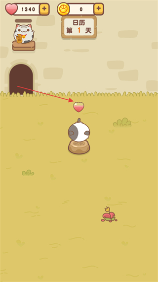 1、點擊小流浪貓上方的喂食圖標按鈕,進行倒糧給小流浪貓喂食。