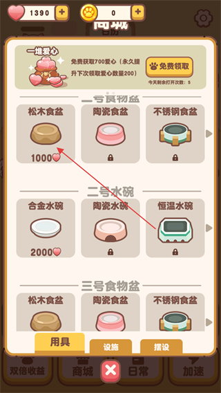 4、在商場中還可以購買不同的食盆和水碗,進行購買后可以照顧更多的小貓。