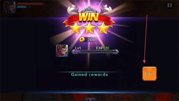 4、通關(guān)后獲得三星評(píng)價(jià)與獎(jiǎng)勵(lì),點(diǎn)擊Exit按鈕退出關(guān)卡界面。
