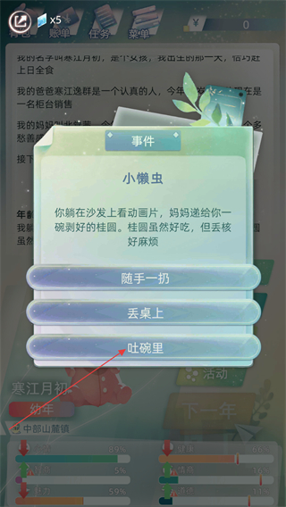 2、在不同的年齡會觸發(fā)不同的劇情事件,點擊下方按鈕進行劇情選項選擇。