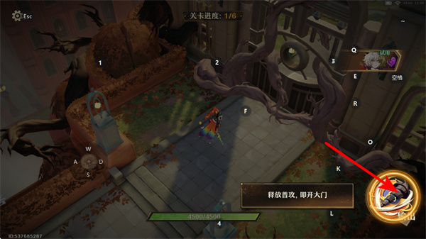 2、游戲要依照紅色箭頭指引,點擊技能的按鈕釋放技能,可觸發(fā)對應效果如打開大門。