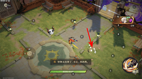 3、緊跟紅色箭頭指引,操控角色靠近怪物區(qū)域,觸發(fā)戰(zhàn)斗后持續(xù)攻擊。