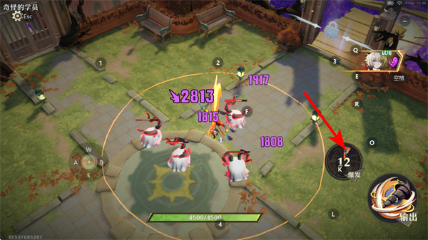 4、按照紅色箭頭指引,點擊爆發(fā)類技能按鈕,可釋放高傷害技能快速清敵。