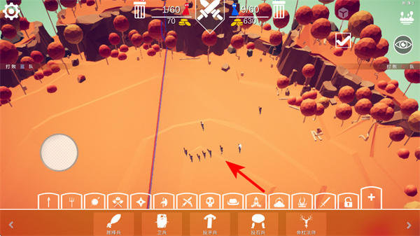 1、找到紅色箭頭指向的人群區(qū)域,點(diǎn)擊該區(qū)域可將人群向?qū)?yīng)方向調(diào)動(dòng),人群會(huì)沿指定路徑移動(dòng),會(huì)同步顯示資源數(shù)值的變化。