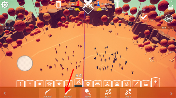 4、按照紅色箭頭指引,在功能欄切換到海怪相關(guān)單位選項(xiàng),點(diǎn)擊后對應(yīng)類型的單位會(huì)補(bǔ)充到人群中,不同單位帶來不同屬性增益。