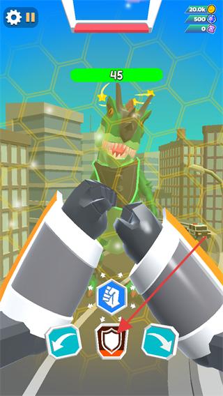 2、面對(duì)著敵方機(jī)甲,點(diǎn)擊或長按下方拳頭按鍵進(jìn)行蓄力瞄準(zhǔn)攻擊。