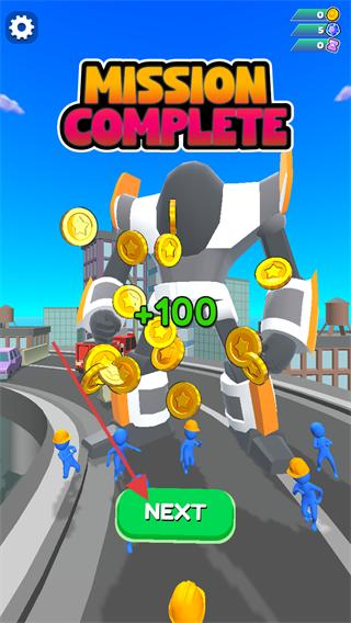 4、擊敗敵方機(jī)甲即為關(guān)卡勝利,可以獲得金幣獎(jiǎng)勵(lì),點(diǎn)擊下方NEXT按鈕可以進(jìn)入下一關(guān)。