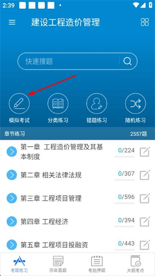 2、在模擬考試說明窗口點擊模擬考試按鈕,進入模擬考試的做題頁面。