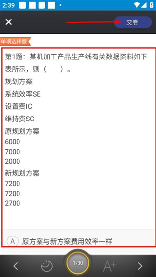3、在模擬考試做題頁面完成題目作答后,點擊右上角的交卷按鈕,結(jié)束本次模擬考試。