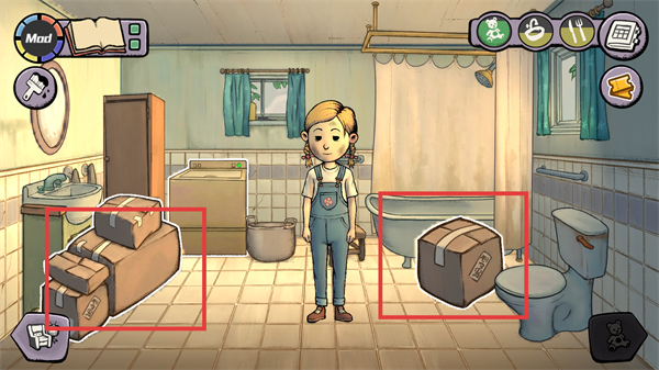 1、進(jìn)入浴室之后,找到遍布角落的箱子,不停點(diǎn)擊即可拆包。