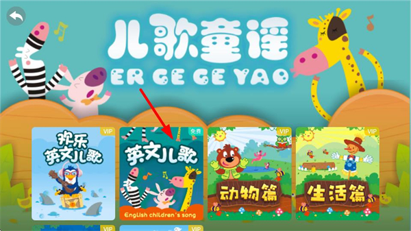 2、在啟蒙早教分類頁面,點(diǎn)擊兒歌童謠選項,進(jìn)入兒歌童謠頁面。
