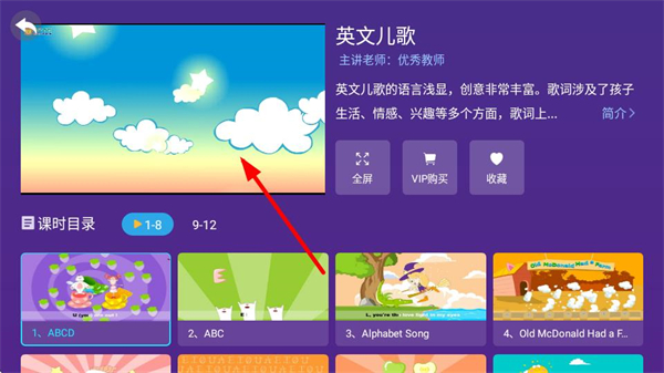 3、在兒歌童謠頁面,選擇目標(biāo)內(nèi)容,進(jìn)入該內(nèi)容的詳情頁面。