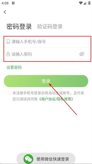 4、在密碼登錄頁面,輸入手機(jī)號和密碼,點(diǎn)擊登錄完成賬號登錄。