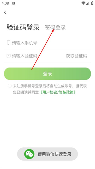 3、在登錄界面,點(diǎn)擊密碼登錄,切換至密碼登錄頁面。