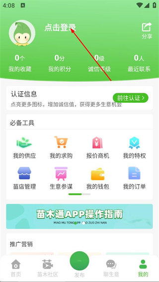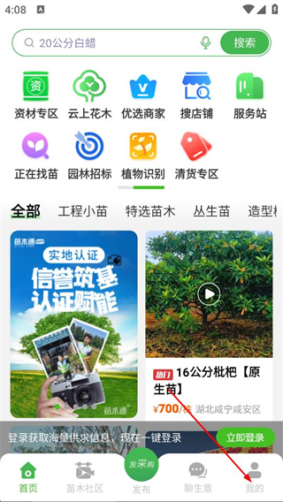 1、在苗木通APP首頁,點(diǎn)擊底部我的,進(jìn)入個(gè)人中心頁面。