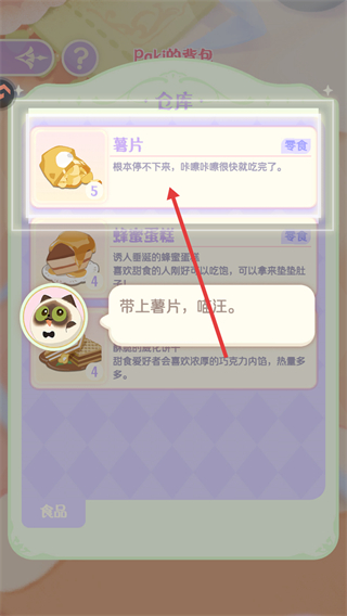 3、彈出食物列表,根據(jù)出行目的,選擇合適的食物。