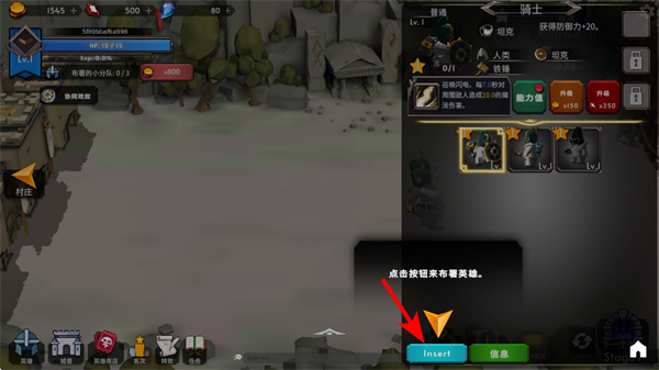 2、游戲中打開騎士單位界面,點(diǎn)擊下方Insert按鈕,即可將選中的騎士部署到戰(zhàn)場(chǎng),參與當(dāng)前戰(zhàn)局。