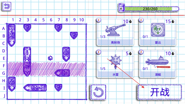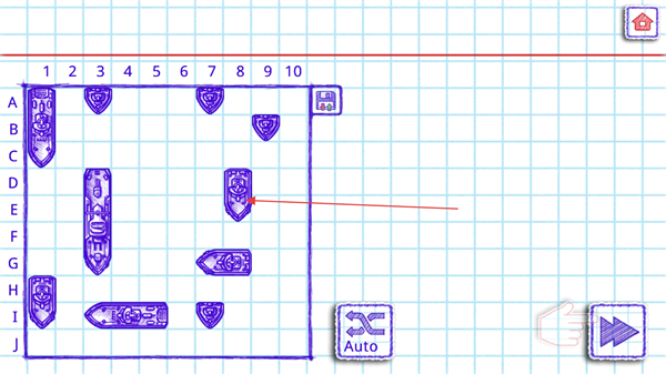 2、進入戰(zhàn)斗前可以進行我方戰(zhàn)艦的位置擺放,點擊右下角按鈕進入下一步。