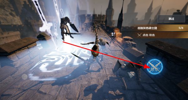 2、滑動(dòng)搖桿移動(dòng),攻擊指定敵人如灰色騎士團(tuán),戰(zhàn)斗中注意觀察剩余目標(biāo)數(shù)量,逐步完成擊殺任務(wù)。