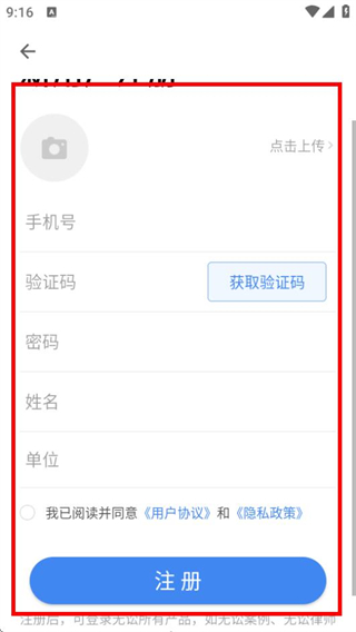 4、在注冊(cè)頁(yè)面,填寫信息并勾選協(xié)議后,點(diǎn)擊注冊(cè)完成賬號(hào)注冊(cè)。