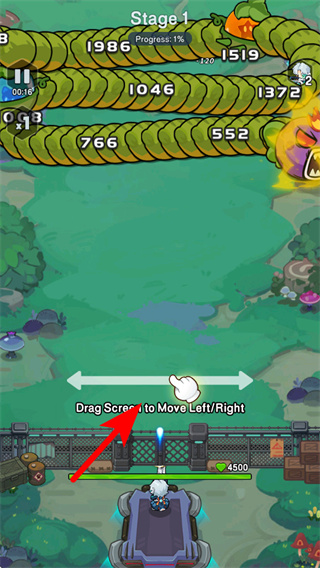 2、游戲中按照提示,拖動屏幕左右移動,可操控角色載具向對應方向移動,調(diào)整攻擊位置。