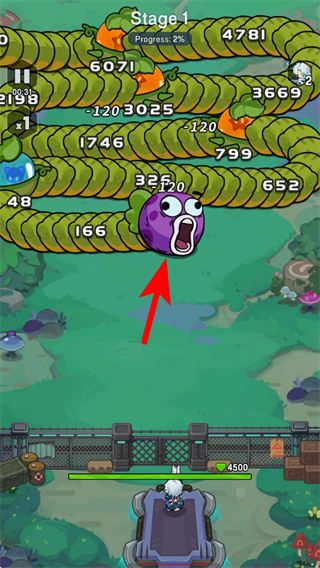 3、攻擊場景中的紫色怪物,命中后會觸發(fā)傷害數(shù)值顯示如-120,持續(xù)攻擊可削減其血量。