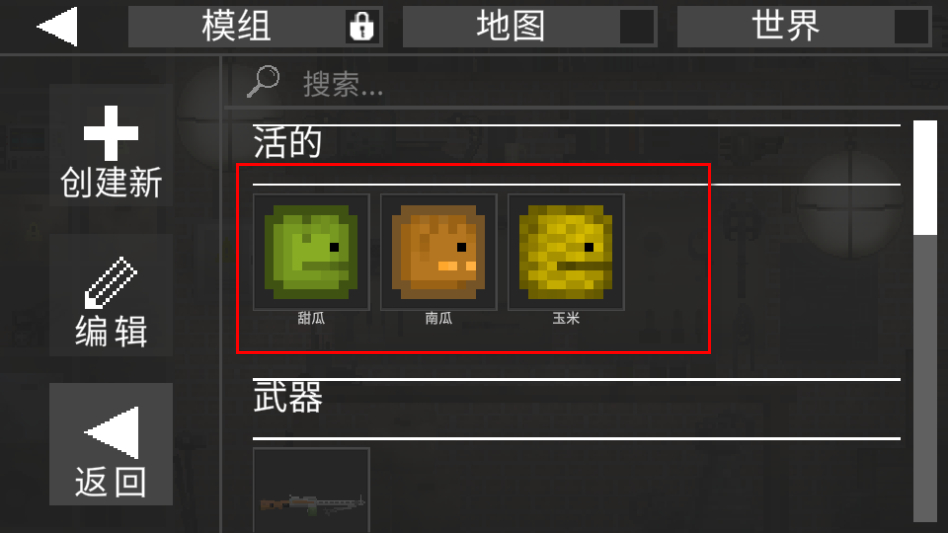 3、在活的分類下選擇基礎(chǔ)角色如甜瓜、南瓜,作為模組的基礎(chǔ)素材。