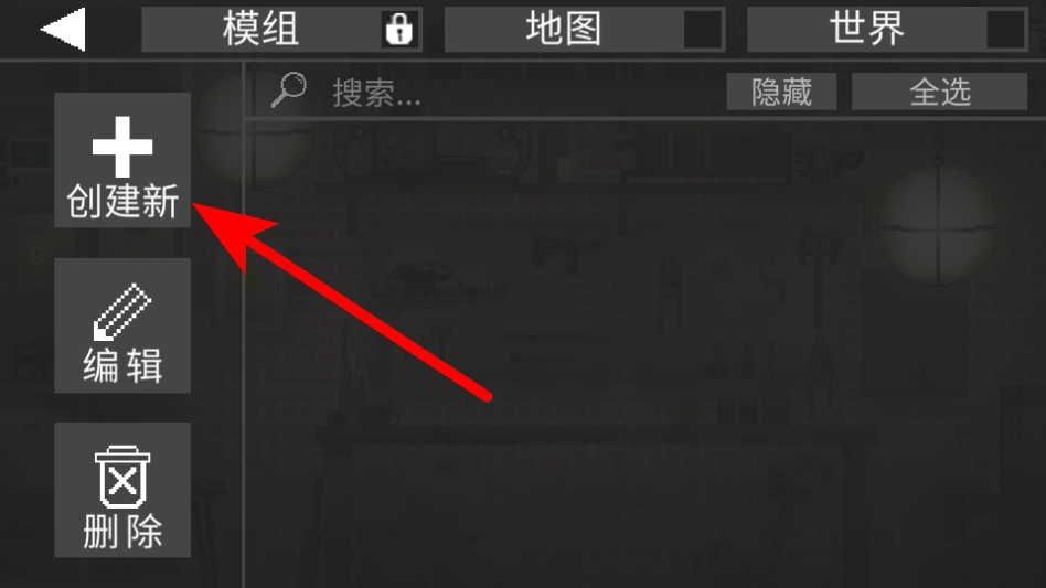 1、在游戲主菜單中,點(diǎn)擊模組編輯器選項(xiàng),進(jìn)入模組創(chuàng)作界面。
