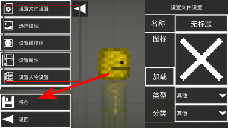 4、通過左側(cè)的設(shè)置選項(xiàng)如設(shè)置紋理、碰撞體、屬性等調(diào)整模組參數(shù),完成后點(diǎn)擊保存,即可生成自定義模組。