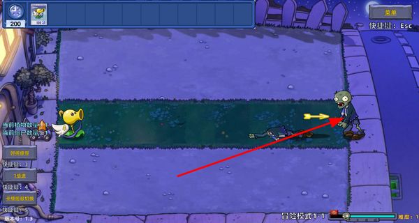 3、依靠布置的植物持續(xù)攻擊僵尸,射出光箭擊敗靠近的僵尸,同時觀察僵尸的移動情況,及時調(diào)整植物布局思路。