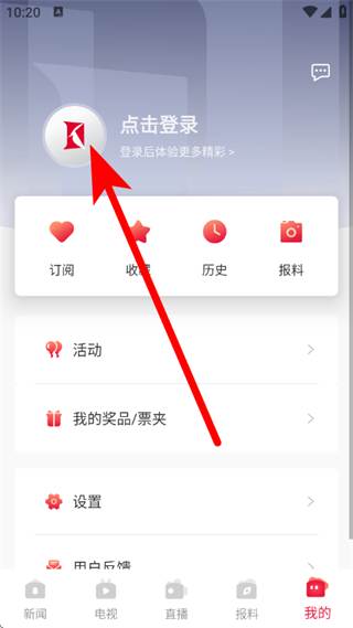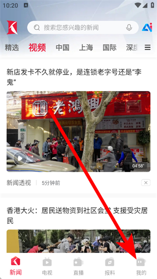 1、打開看看新聞網(wǎng),在主界面點(diǎn)擊底部我的,進(jìn)入個(gè)人中心頁(yè)面。