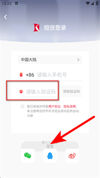 4、在輸入驗(yàn)證碼框中填寫收到的驗(yàn)證碼,勾選協(xié)議后,完成登錄操作。