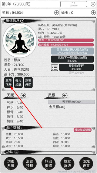1、角色滿足渡劫條件后,找到并點擊進入渡劫界面。