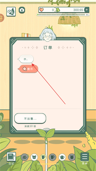 2、訂單顯示需求為水,可點擊提示輔助制作,消耗10貨幣獲取提示。