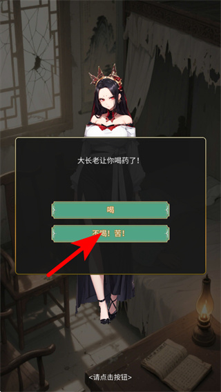 1、當界面出現(xiàn)大長老讓你喝藥了的對話時,點擊指向不喝苦選項,可拒絕喝藥,觸發(fā)劇情分支。