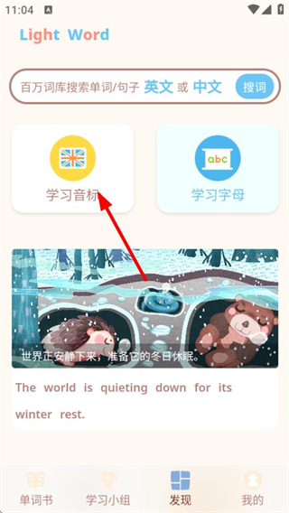 2、在發(fā)現(xiàn)頁面,點擊學習音標選項,進入學習音標頁面。