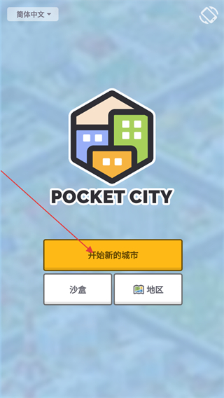 1、打開口袋城市3游戲主頁,點(diǎn)擊開始新的城市按鈕創(chuàng)建個(gè)人的口袋城市。