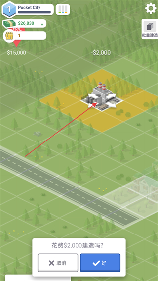 4、拖動(dòng)屏幕移動(dòng)建筑選擇合適的位置進(jìn)行建造,如果建設(shè)在沒有道路的地方需要額外在建設(shè)道路。