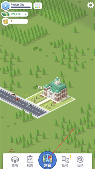 2、進(jìn)入城市經(jīng)營界面,點(diǎn)擊下方的建造按鈕,給城市建造一些基礎(chǔ)設(shè)施。