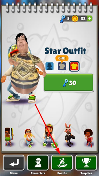 2、在商店頁面中,點擊下方的Boards選項,進入滑板選擇界面。