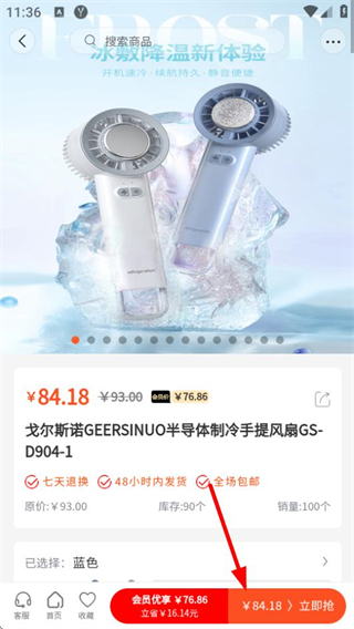 4、在商品詳情頁面,點(diǎn)擊立即搶,即可完成該商品的購買操作。