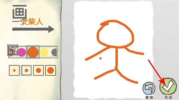1、進入游戲后完成火柴人繪制后,點擊界面右下角的完成按鈕,可確認當前的火柴人創(chuàng)作。