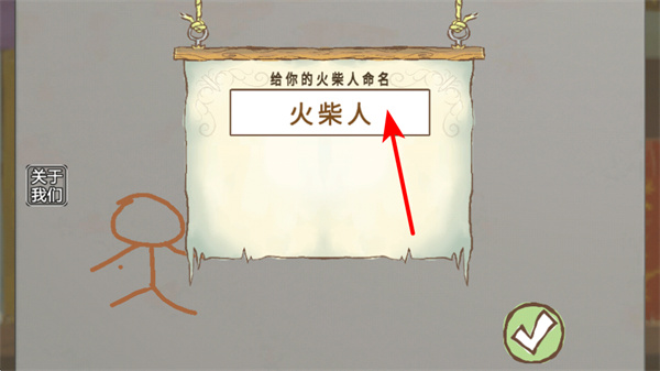 2、游戲中在命名界面,確認輸入的火柴人名稱后,點擊右下角的對勾按鈕,可完成命名操作。