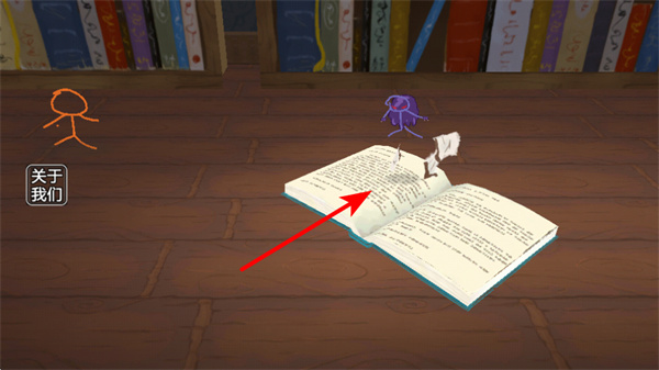 4、在書本互動場景中,點擊翻開的書本區(qū)域,可觸發(fā)對應的劇情或互動內容,推進游戲流程。